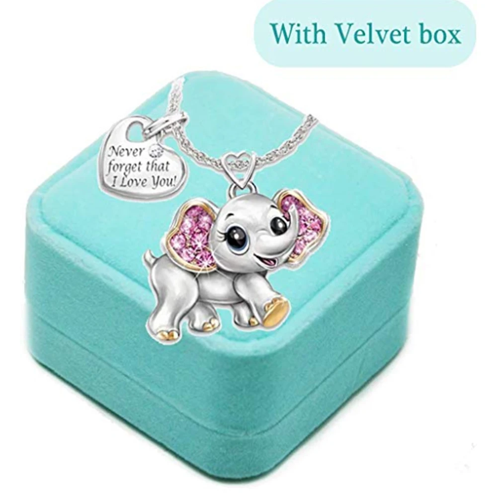 Детское ожерелье со слоном для девочек, милые украшения с животными «никогда не забывайте, что я люблю тебя», подвеска в виде сердца, подарок для подростков, Рождество Хэллоуин День благодарения, с подарочной коробкой