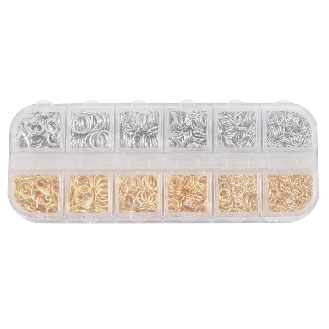 Лобстеры застежки и открытые прыжки кольца, он включает в себя 2 различных цвета и 6 различных размеров.