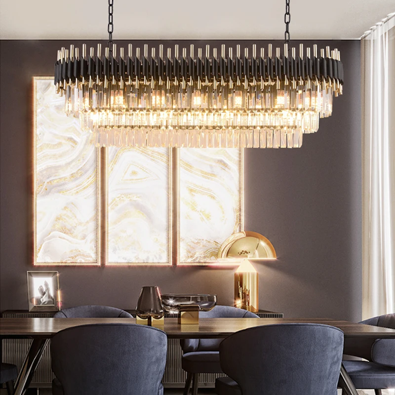 Роскошная прямоугольная хрустальная люстра, светодиодная черная потолочная Подвесная лампа для гостиной столовой кухни
