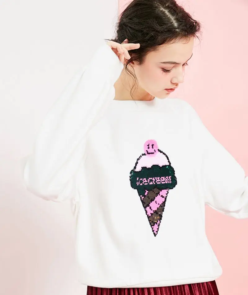 Prajna мультфильм вишня блесток патч Реверсивный измененный цвет патч мороженое конусные патчи для аппликация на одежду значок