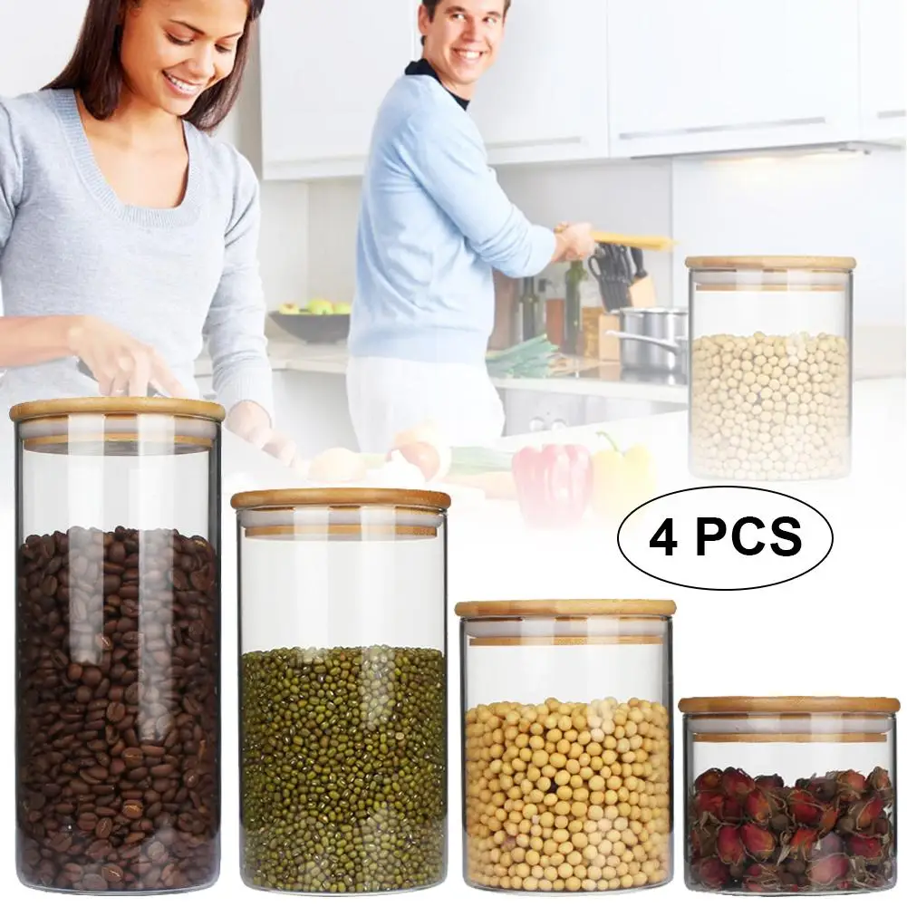 4 шт. герметичные стеклянные баночки для хранения пищи канистра набор кухонных