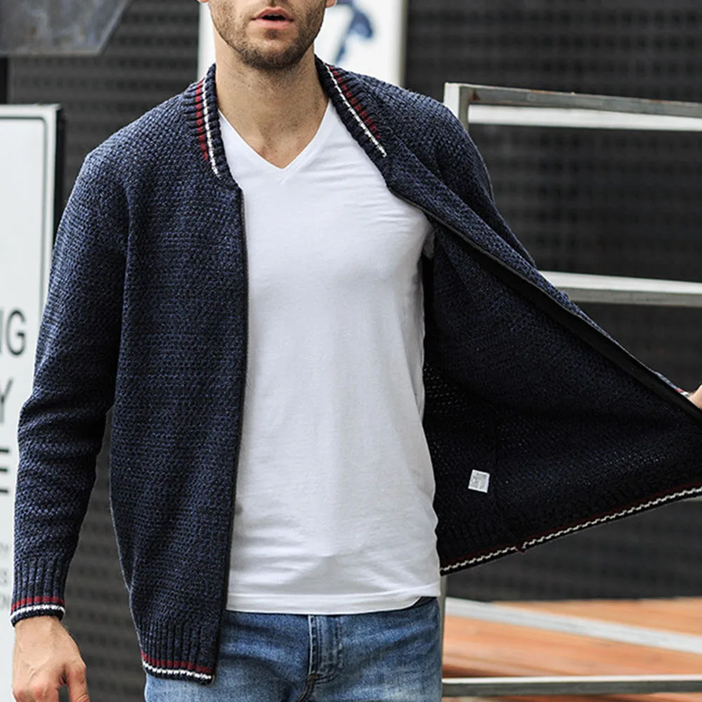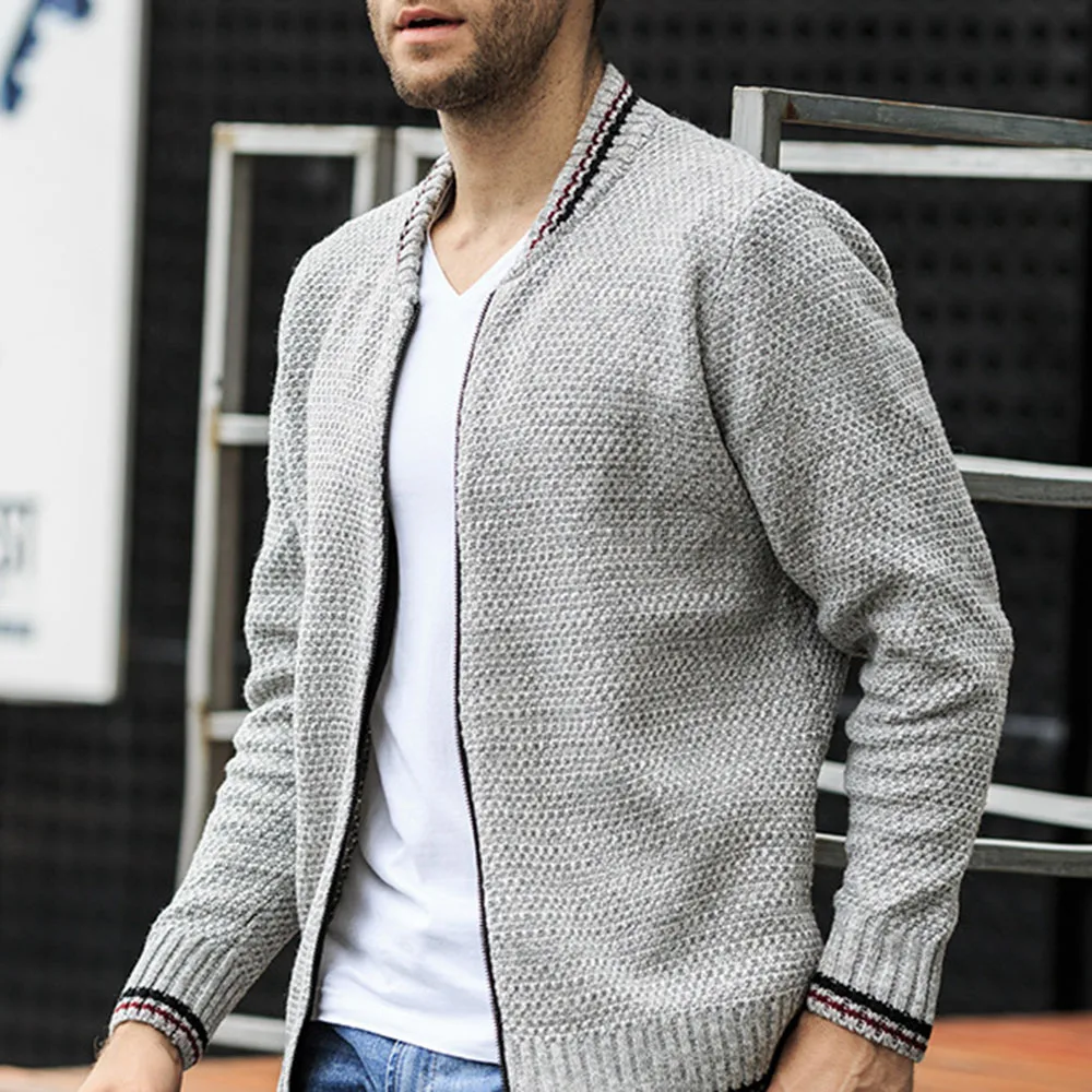 Осенне-зимний теплый модный мужской однотонный вязаный кардиган без рукавов с