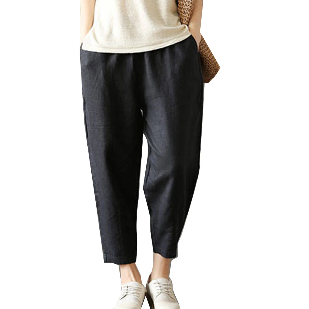 Осенние повседневные женские однотонные брюки 9/10 с эластичным поясом джоггеры