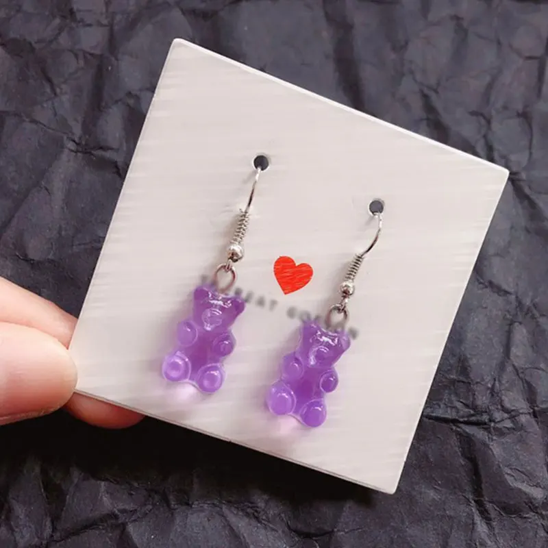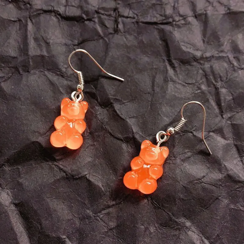 Милые цветные прозрачные серьги с рисунком медведя из смолы, серьги для девочек, ювелирные изделия