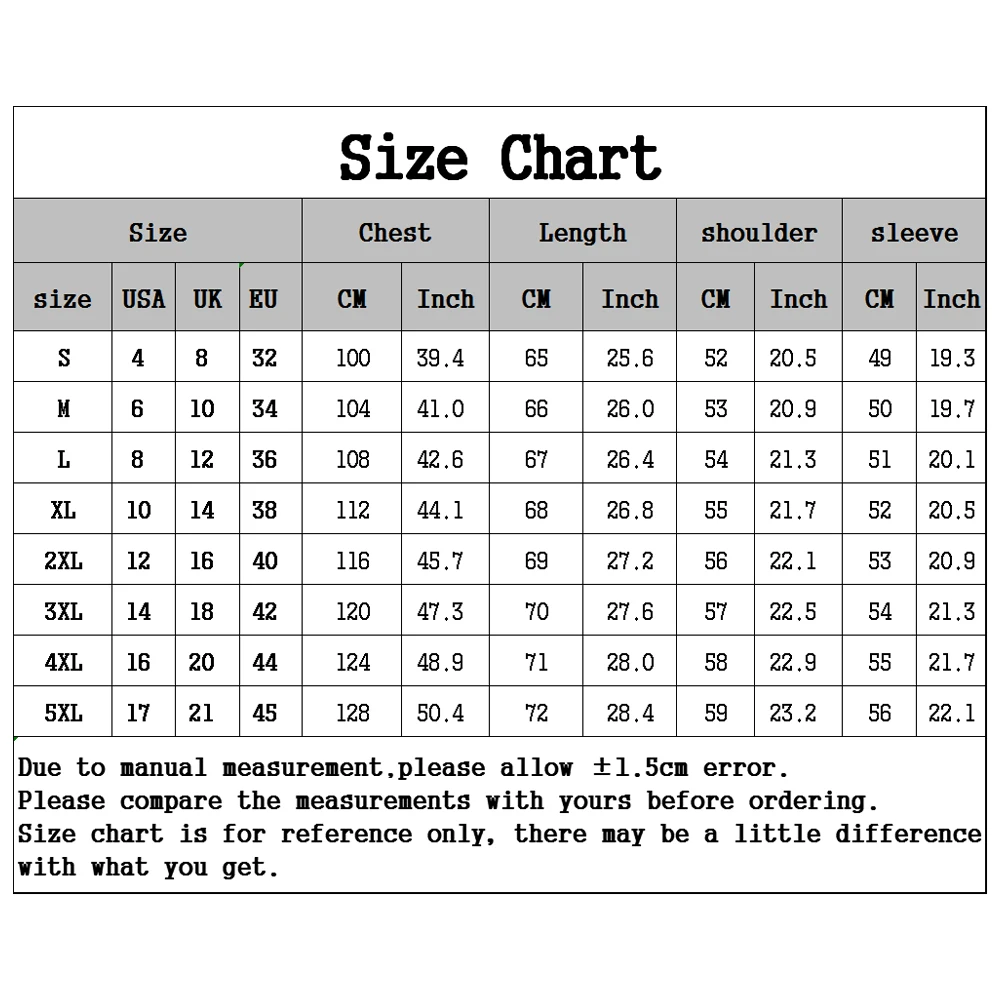 [Наши Размеры 5XL] Грудь: 128 см/50,4 ", плеча: 59 см/23,2", рукав: 56 см/22,1 ", Длина: 72 см/28,4" (прибл.)