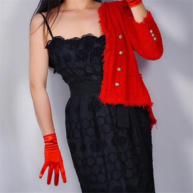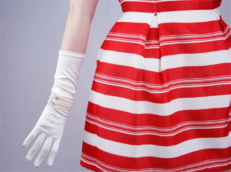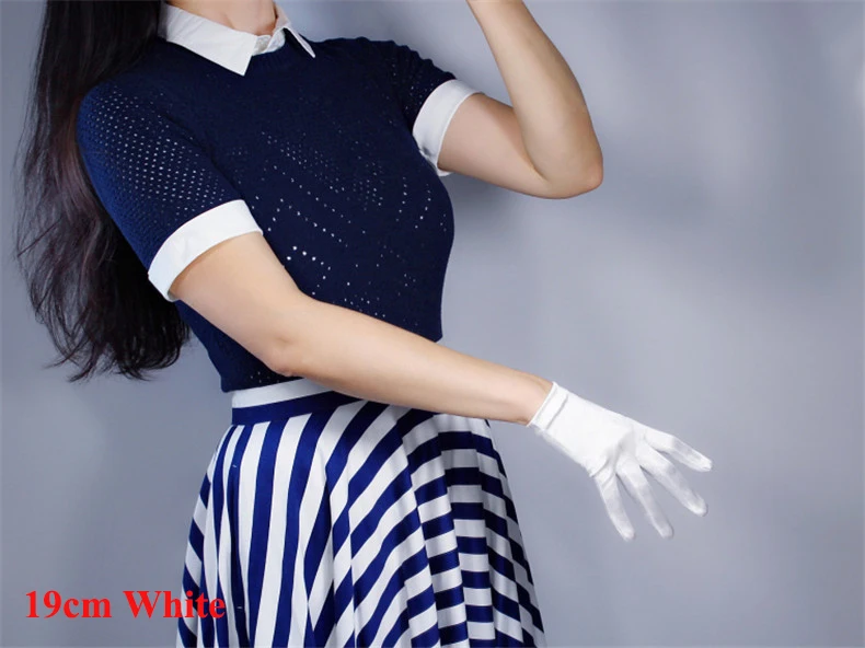 Шелковые атласные перчатки 19 см Ультра короткие эластичные мерсеризованные жемчужные шелковые атласные рисовые белые жемчужные солнцезащитные женские Вечерние перчатки WSG10