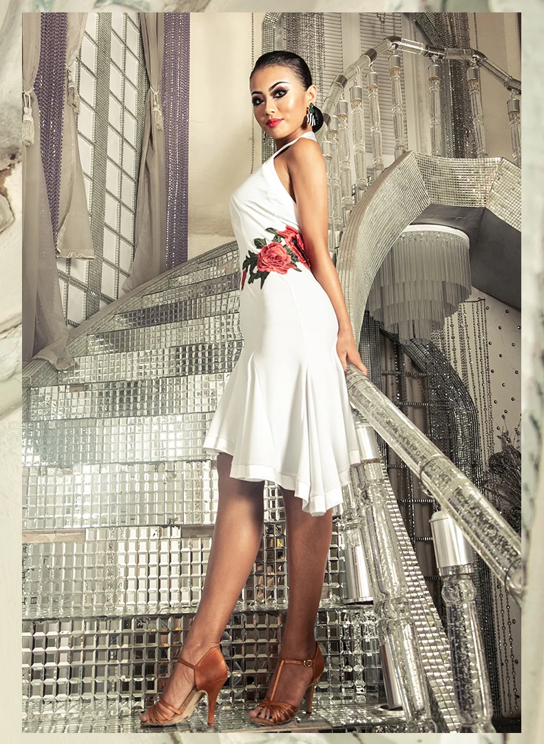 Hot Sale Latin Halter Neck Dance Dress Sexy Tango Dancing Skirt for Women Dancer Stage Show Costumes Qiaqia/Rumba 2 Colors B0204.
