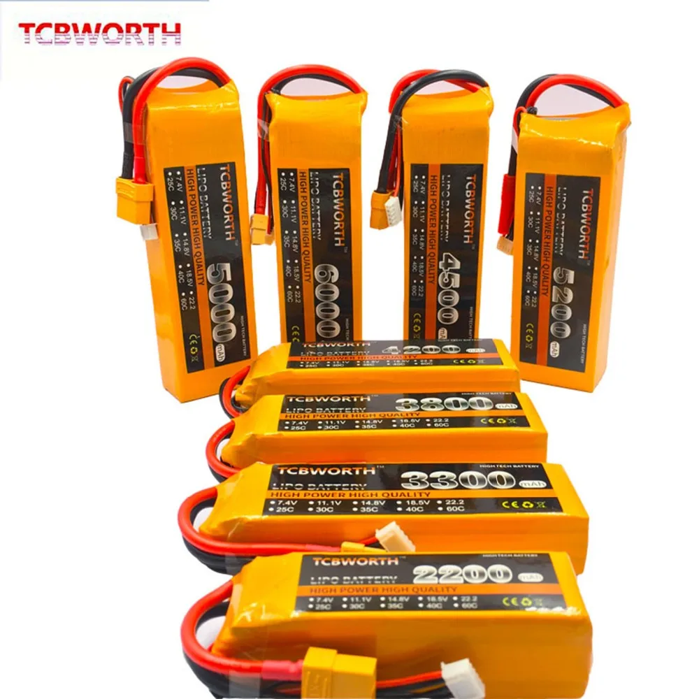 Литий-полимерные аккумуляторы TCBWORTH для радиоуправляемых игрушек, 2S-6S 7,4 V-22,2 V 4200mAh-6000mAh 25C 35C и 60C для RC вертолет, самолет с радиоуправлением Quadrotor LiPo аккумуляторы
