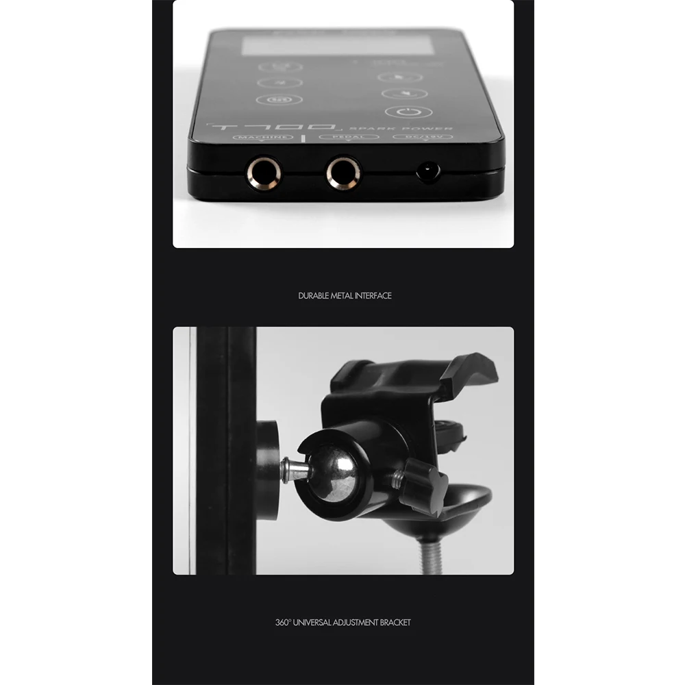 Параметры Цвет: черный Вилка: ЕС/США/Великобритания/Австралия Название: T700 Татуировка питания Вход: DC19V2.5A Выход: DC3-18V2.5A Размеры: 15*8,5 см Особенности 1. Легкий и компактный, легко носить с собой 2. ЖК-дисплей, ЖК-экран быстро реагирует, всегда знать информацию о ключах 3. Нажмите, чтобы начать время, долго нажмите, чтобы очистить время Посылка включает в себя 1 с татуировками электропитания 1 адаптер 1 кабель питания 1 Универсальный кронштейн