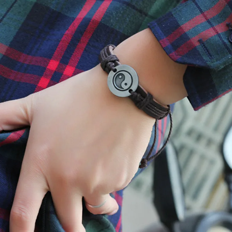 Тай Чи Британский мужской браслет Инь Янь сплав браслет кожаный плетеный браслет коричневый подарок друзьям браслет #40