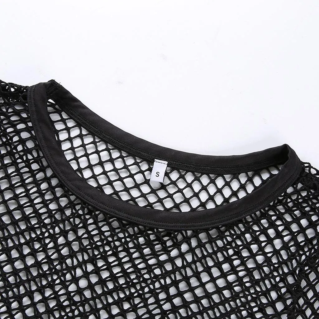 Женская футболка с длинными рукавами, короткая Сетчатая футболка с вырезами и перекрестной шнуровкой