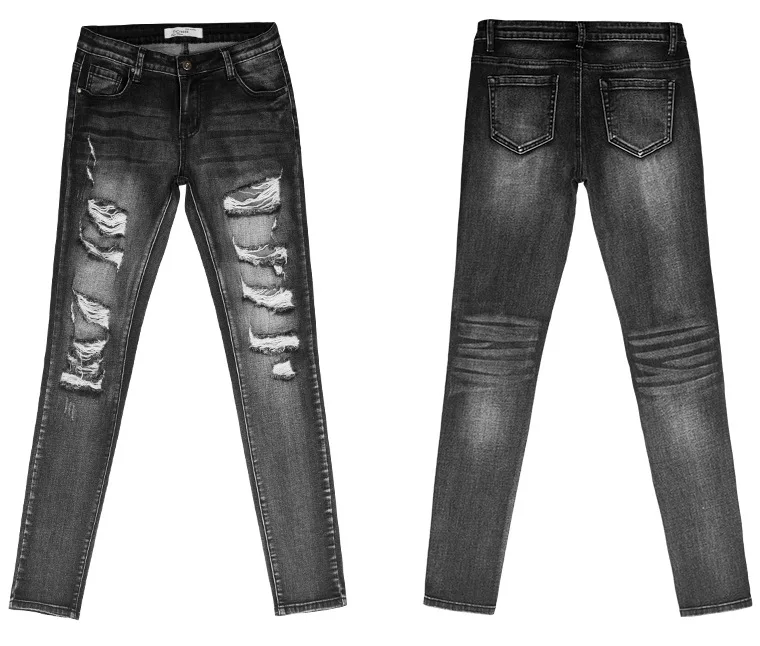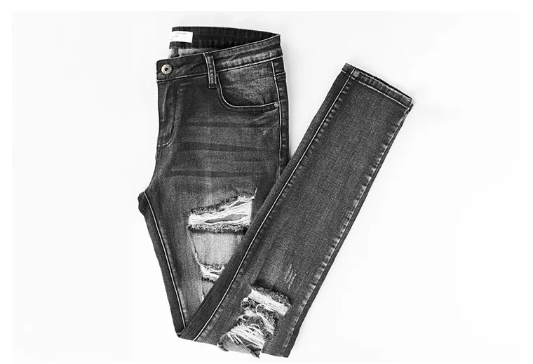 Рваные джинсы для женщин узкие с низким вырезом серые Эластичные Обтягивающие