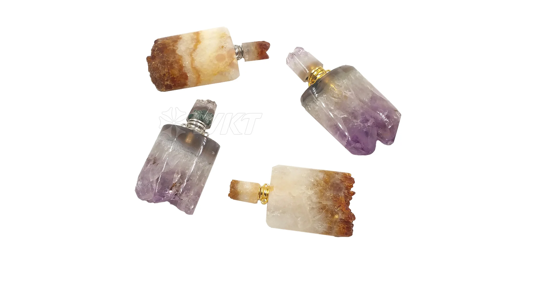 WT-P1500, модный портативный натуральный аметист, Желтый цитрин, Кварцевая подвеска в виде бутылочки парфюма для леди, 1 шт.