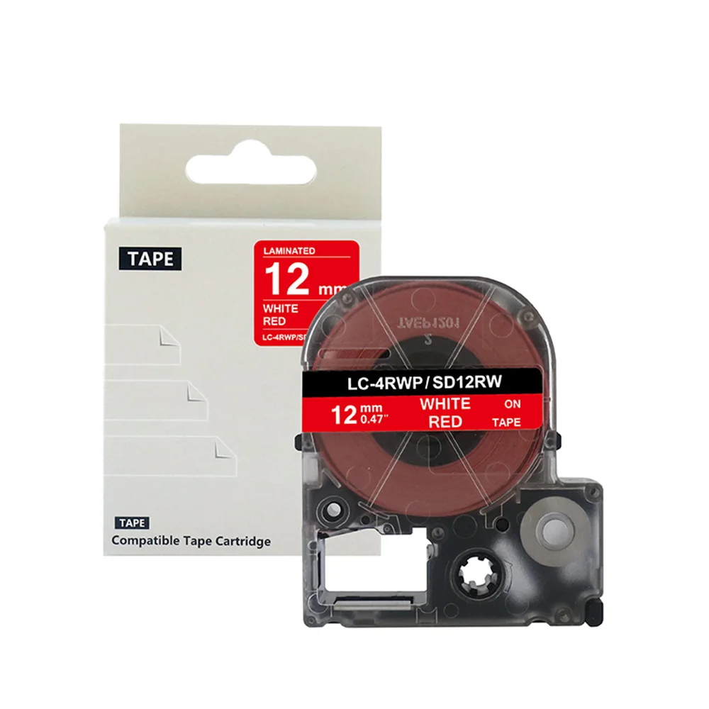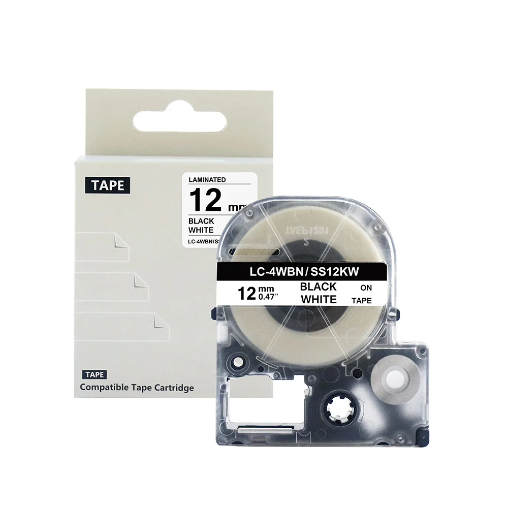 Совместимая лента для этикеток 12 мм X 8 метров для Epsons LabelWorks LW400, LW600P, LW700, LW1000P, King Jim:SR550C, SR530C, SR230C, SR230CH.