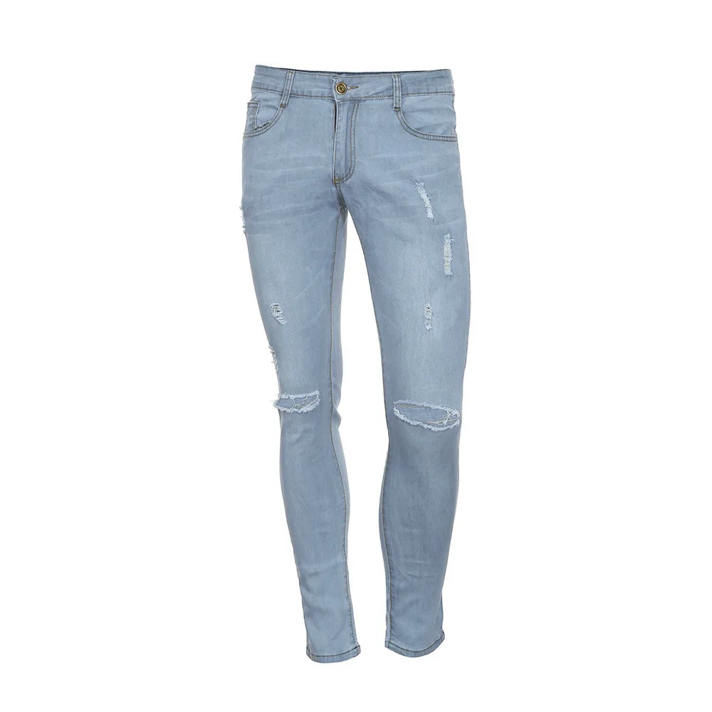 Мужские обтягивающие Стрейчевые джинсовые брюки с потертостями, рваные свободные облегающие джинсовые брюки