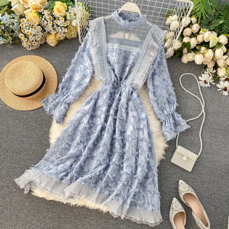 OCQBI пикантное кружевное лоскутное однотонное ТРАПЕЦИЕВИДНОЕ женское платье в