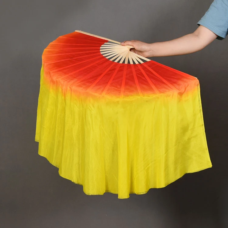 Jiaozhou Yangko танцевальный Вентилятор Шелковый веер для танца двухсторонний двухцветный Xiu-color квадратный танцевальный ветер четкий дождь вспоминая красный и желтый веер
