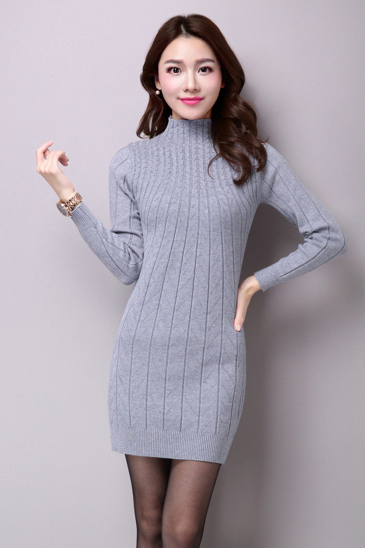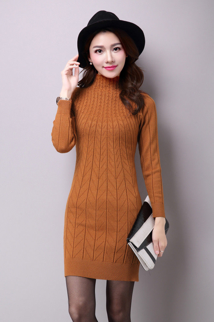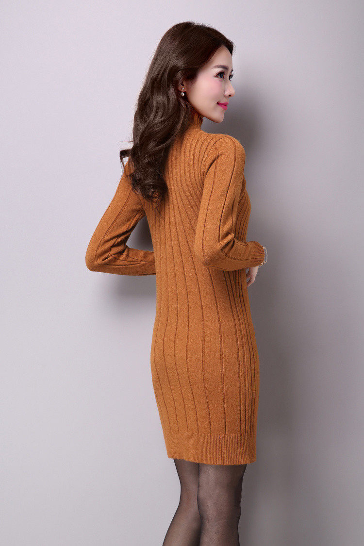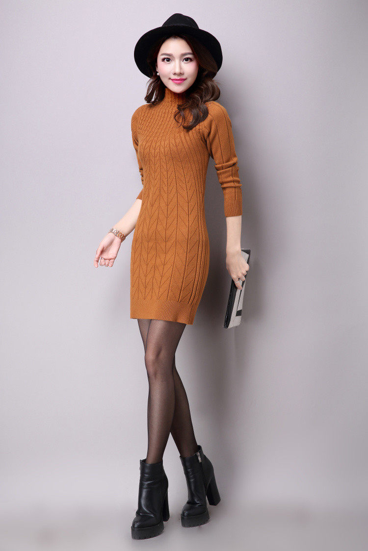 Новое Осеннее женское платье-свитер с длинным рукавом, плотное теплое вязаное платье, сексуальное облегающее платье с высоким воротом, vestido de festa DG411