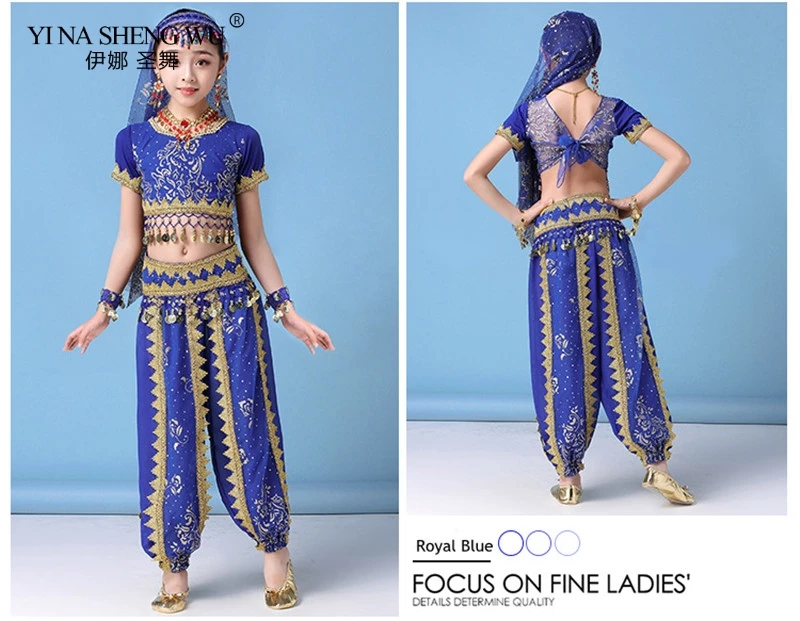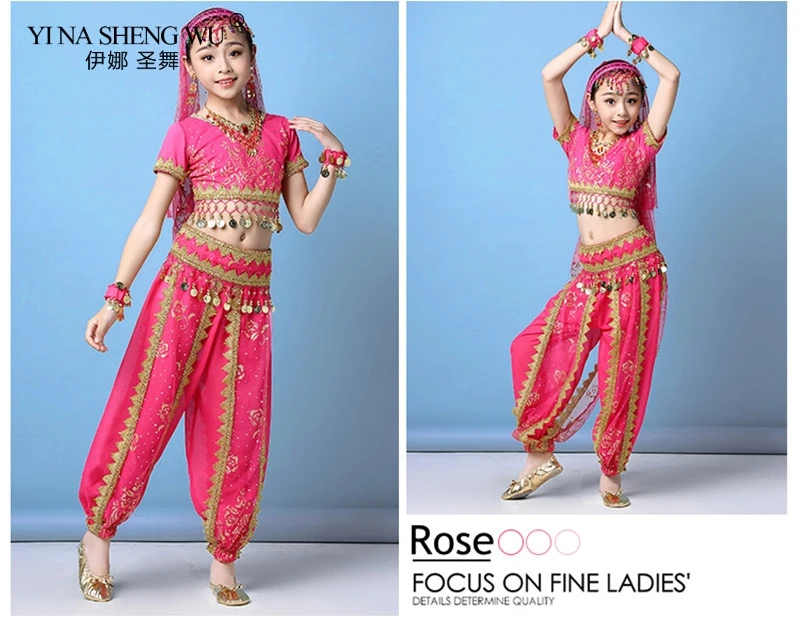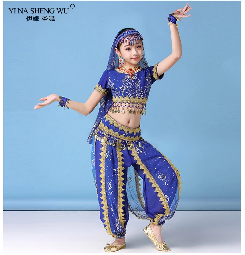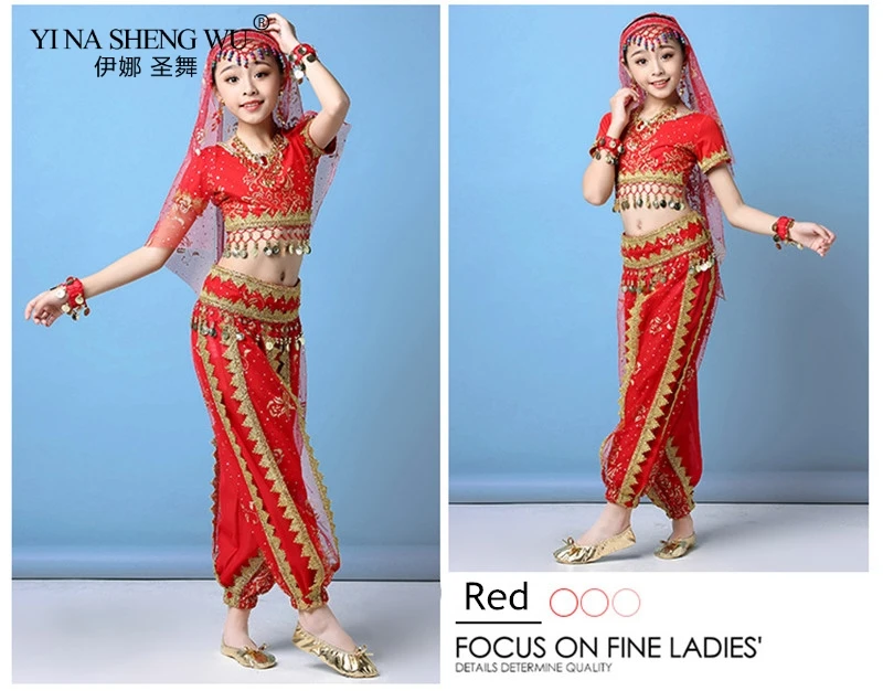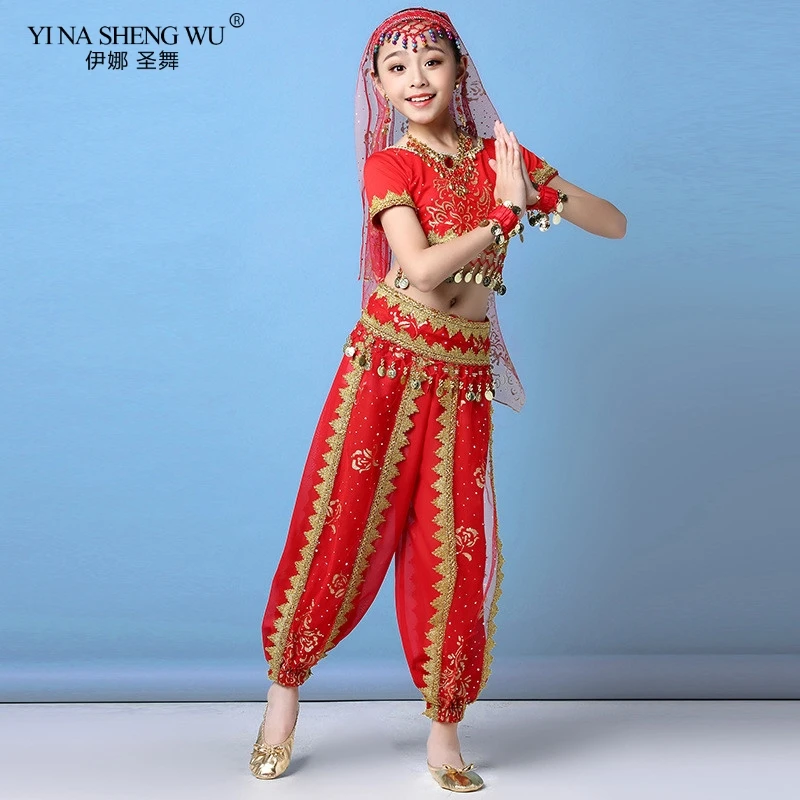 Детский костюм для танца живота, индийский комплект одежды для танца живота, восточные Детские платья для танца живота, индийский Детский костюм, 4 цвета