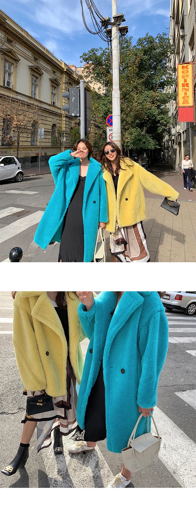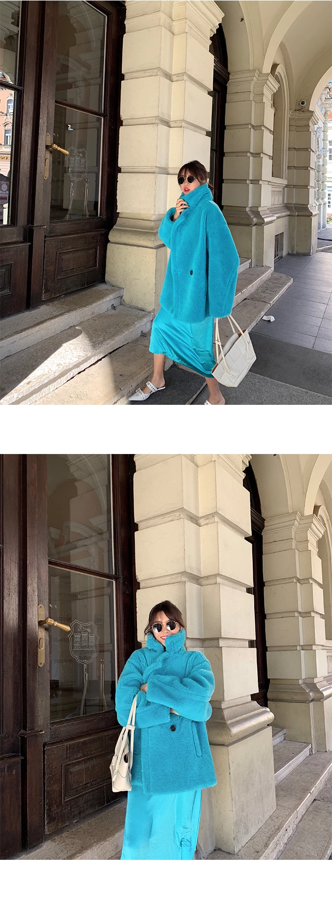 Natural Real Sheep Fur Double-Faced Coat Winter Women Short Length Oversized Fox Collar Thick Warm New Luxury Fashion | Женская одежда
