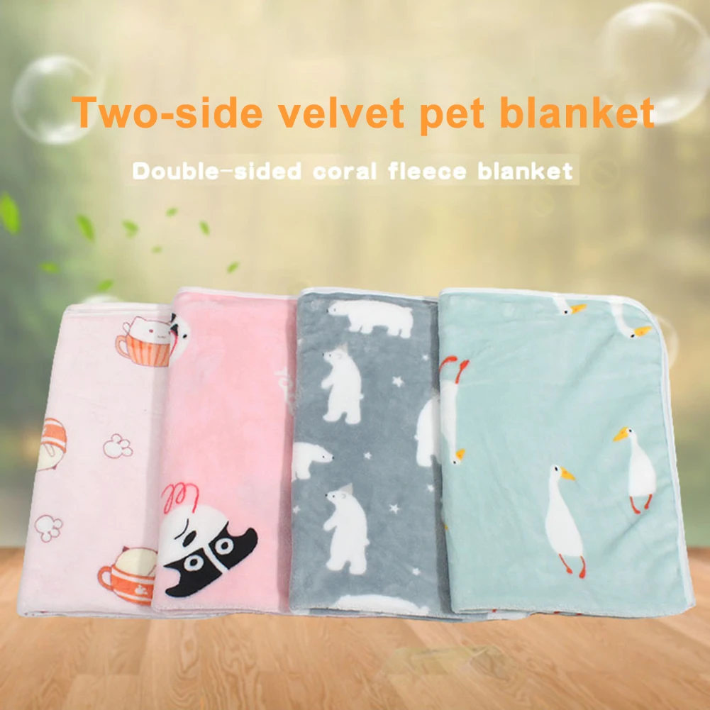 Мягкий теплый коралловый флис с принтом животных из мультфильмов для домашних животных, собак, кошек, постельный коврик, полотенце