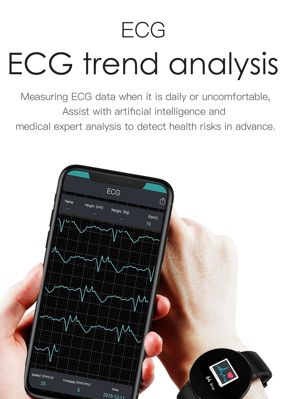 ЭКГ, обнаружение сердечного ритма: Поддержка непрерывного сердечного ритма, измеряется каждые 10 минут