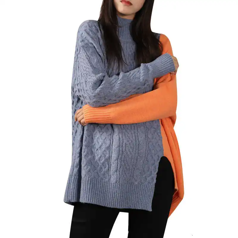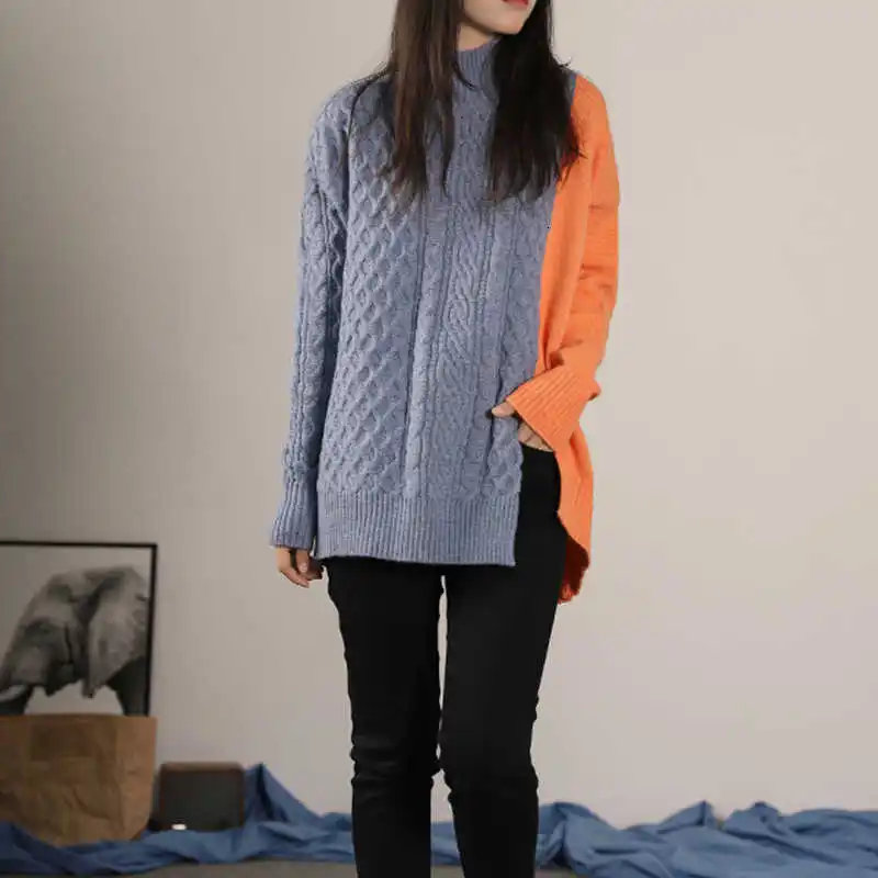 Свитер Женский вязаный Max LuLu с высоким воротником в Корейском стиле свободный