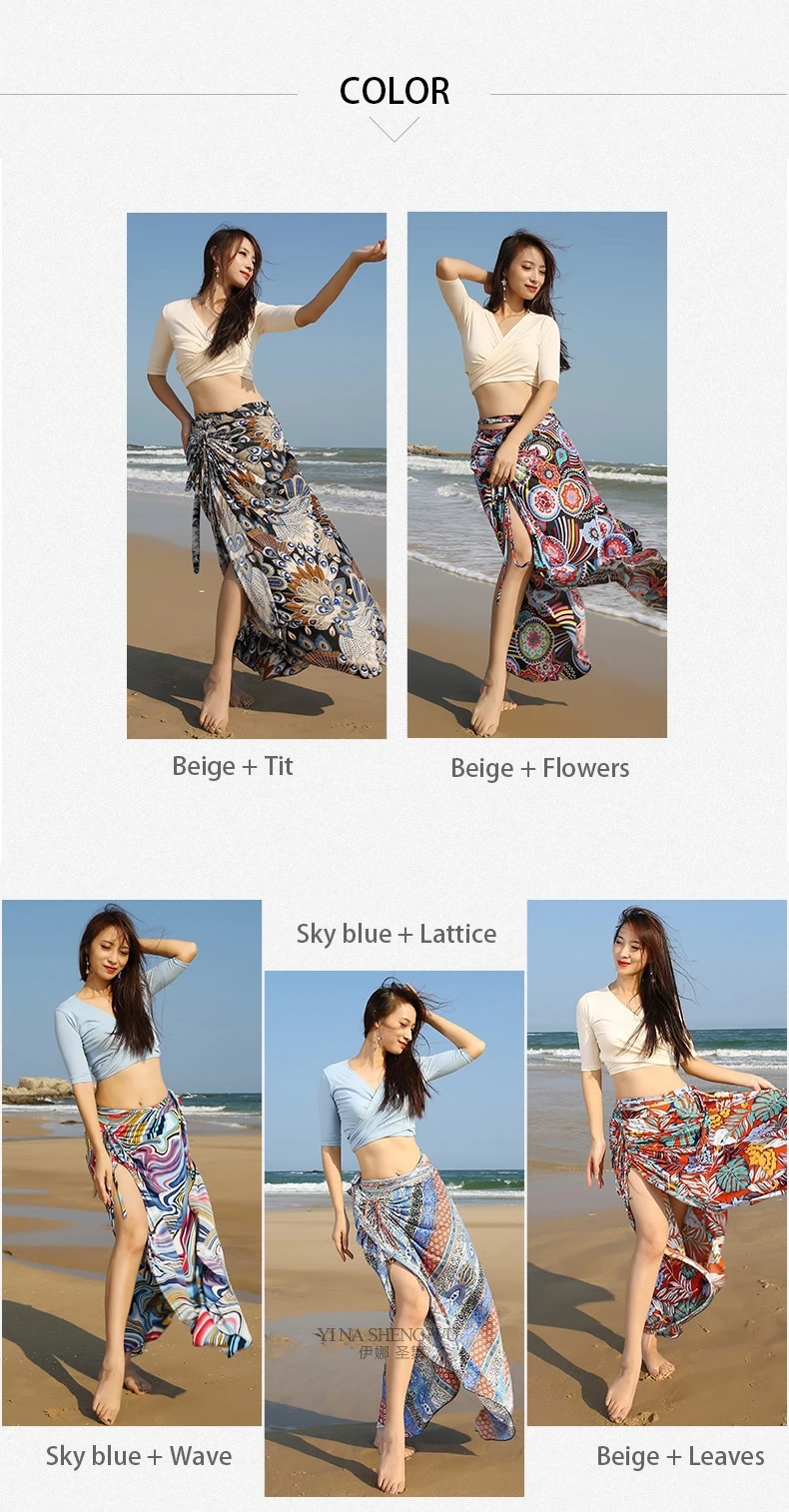2pcs Set Belly Dance Oriental Dance Practice Clothes New Women Belly Dance Clothing Printed Skirt Belly Dance Costume Top Skirt
