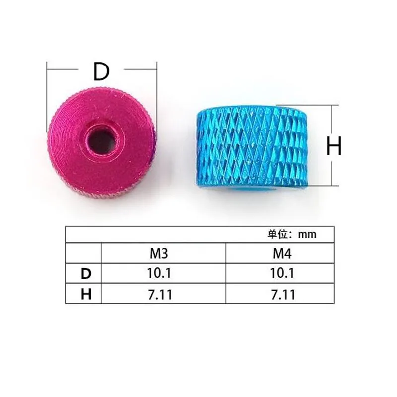10Pcs M3 M4 Aluminium alloy coloured nut Colorful anodized aluminum alloy Hand turn knurled thumb nut