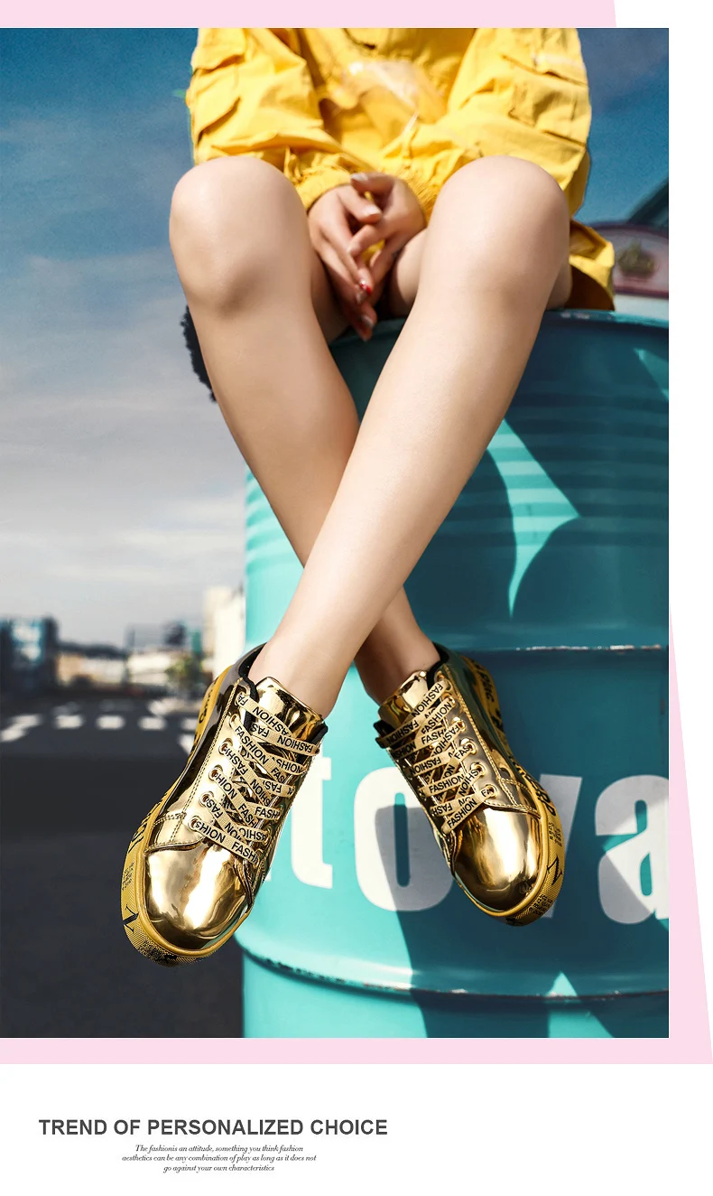 Superstar/кожаные уличные туфли золотистого и серебристого цвета; Мужская Вулканизированная обувь; Женские кроссовки хип-хопа; Обувь для влюбленных пар; Стильные водонепроницаемые туфли на шнуровке