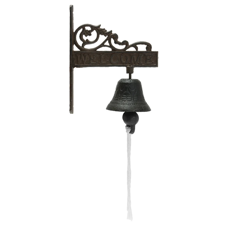 Nordic Style Vintage Brown Metal Iron Door Bell Wall Mounted Welcome Cast Wireless Doorbell Porch Garden Decoration