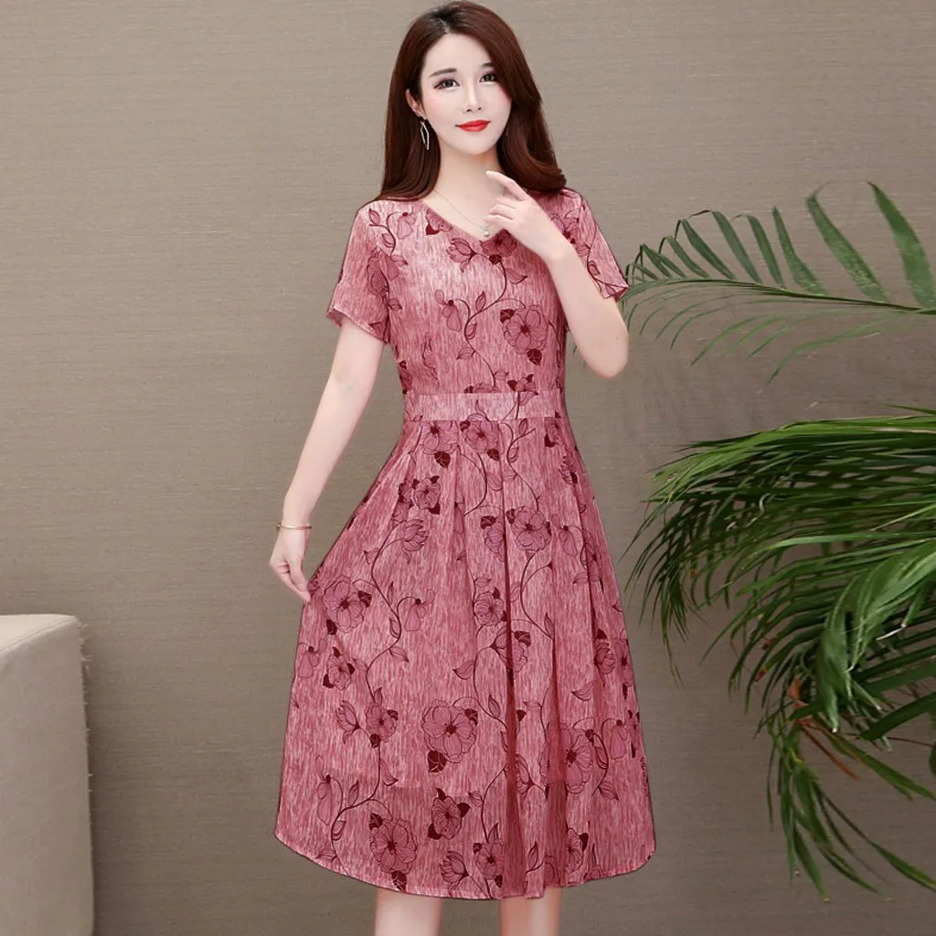 Особенности: повседневная одежда, v-образный вырез, принт, короткий рукав, приталенное платье трапециевидной формы, повседневная одежда, летнее платье, летнее Повседневное платье ..