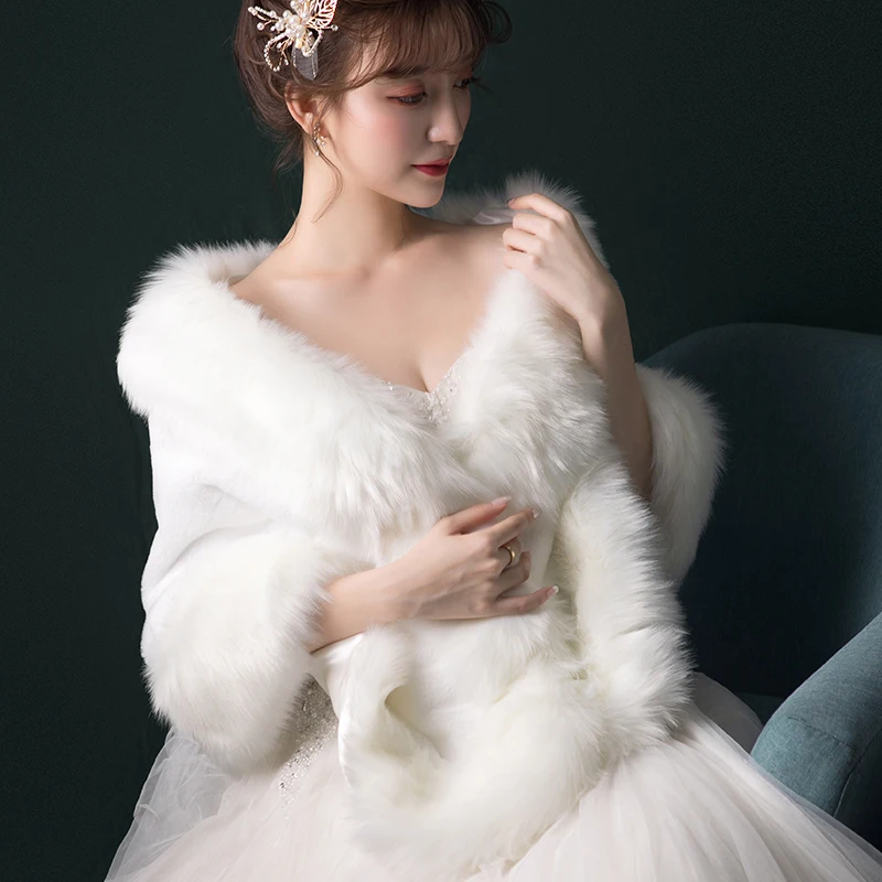 Женская зимняя накидка из искусственного меха на каждый день жакет для невесты
