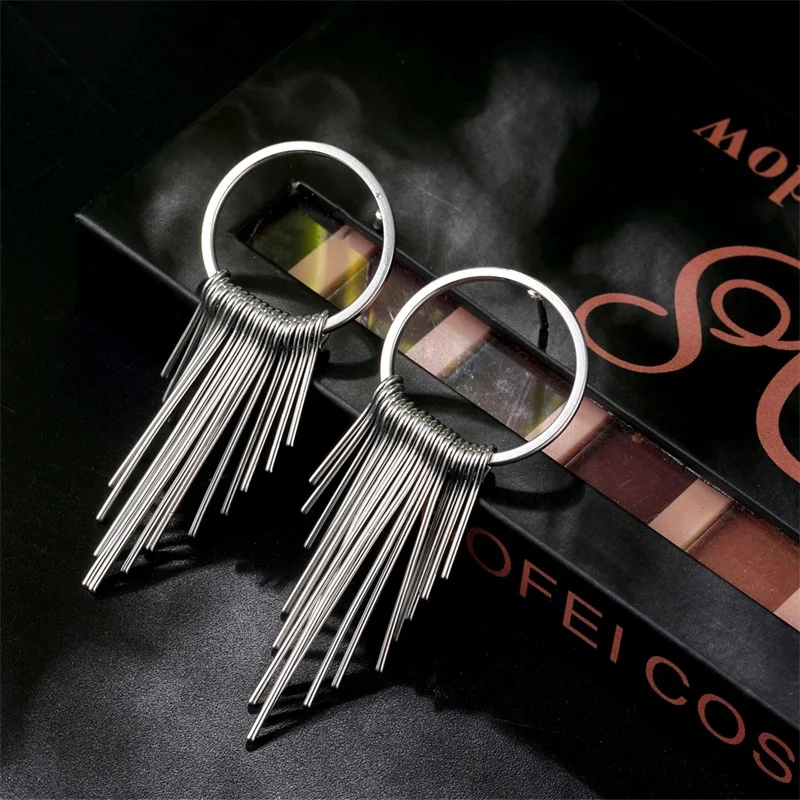 Женские серьги с кисточками золотого и серебряного цветов, Длинные геометрические серьги