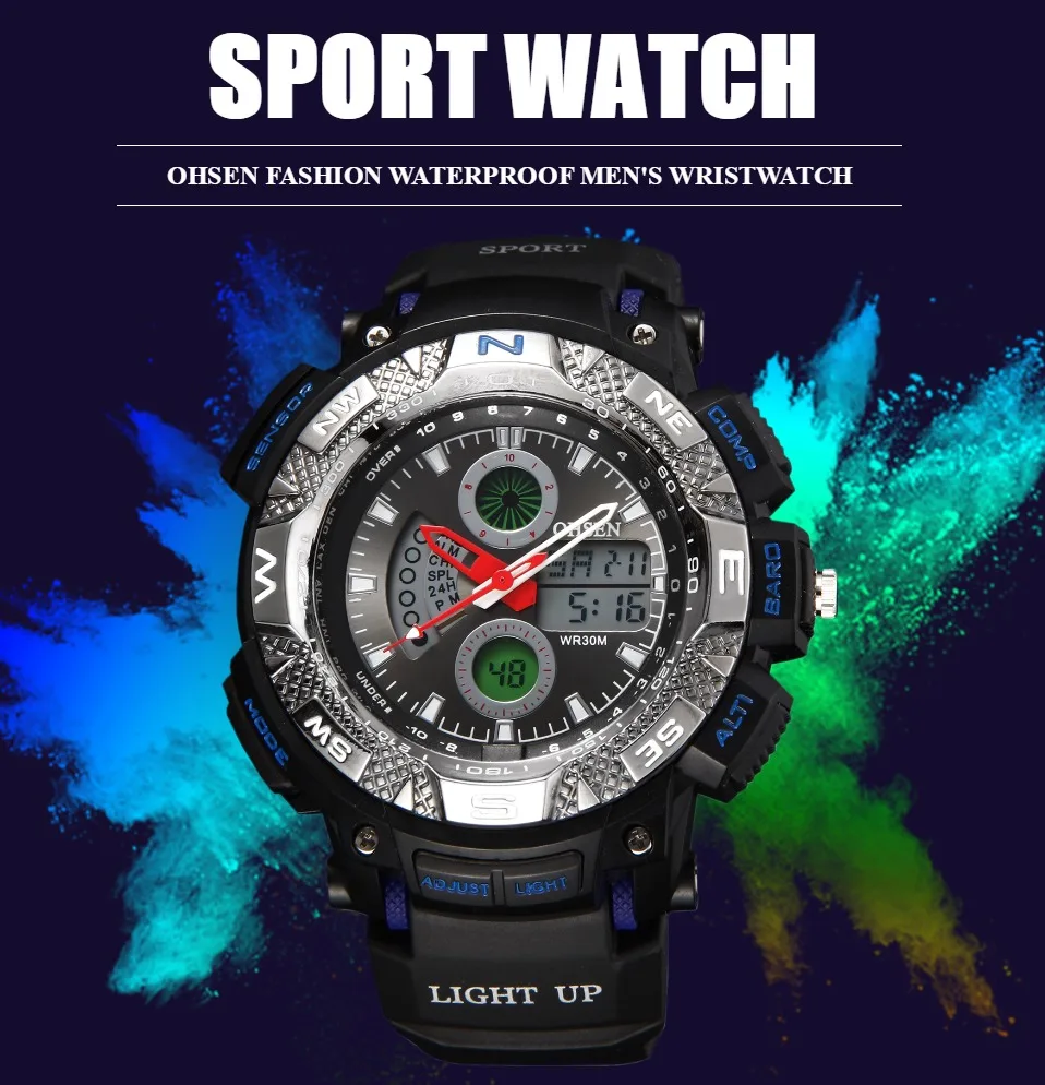 Японская Кнопка Maxell, более длительный срок службы Задняя крышка из нержавеющей стали с лазерным логотипом OHSEN Резиновый ремешок хорошего качества, более удобный
