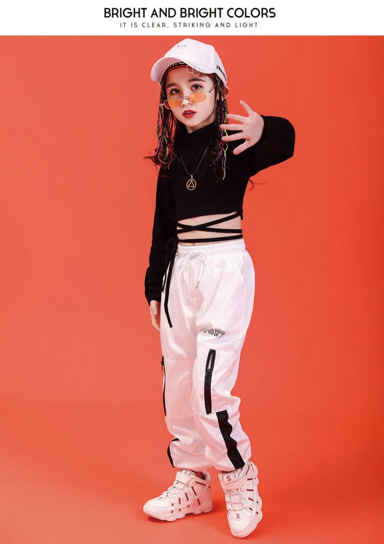 2020 Hip Hop Clothing Children kids Sweatshirt Black Shirt Top Pants for Girl Jazz Dance Costume Ballroom Dancing Clothes Wear