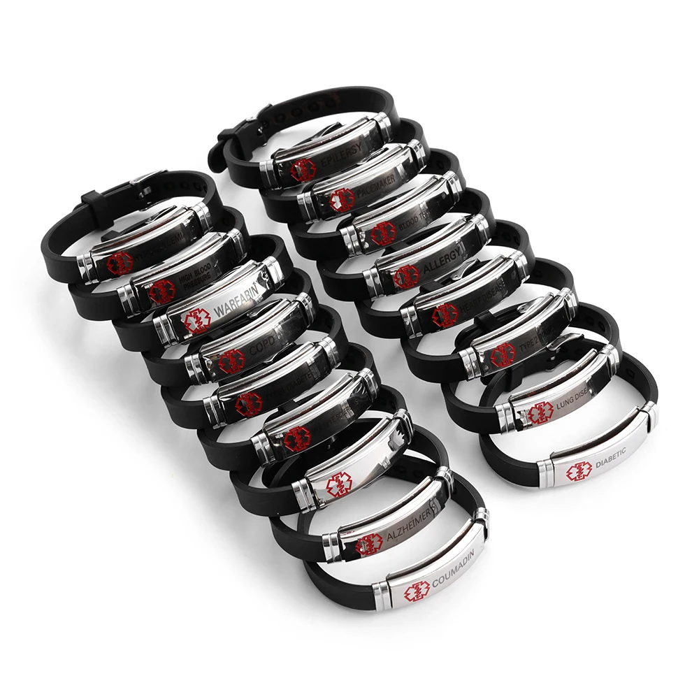 17 видов стилей, женские и мужские силиконовые браслеты из нержавеющей стали, медицинские оповещения, диабет, эпилепсия, Альцгеймер, аварийные ювелирные изделия, подарки
