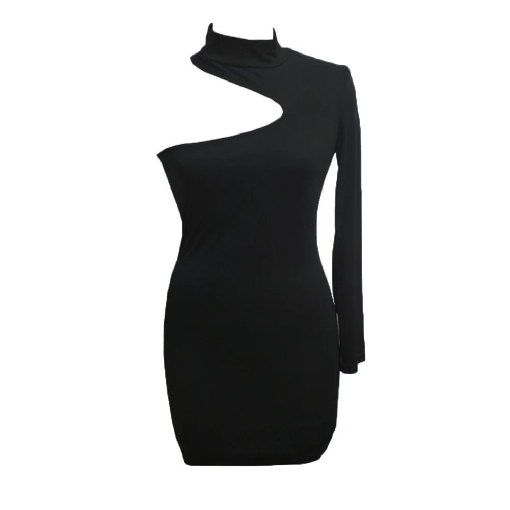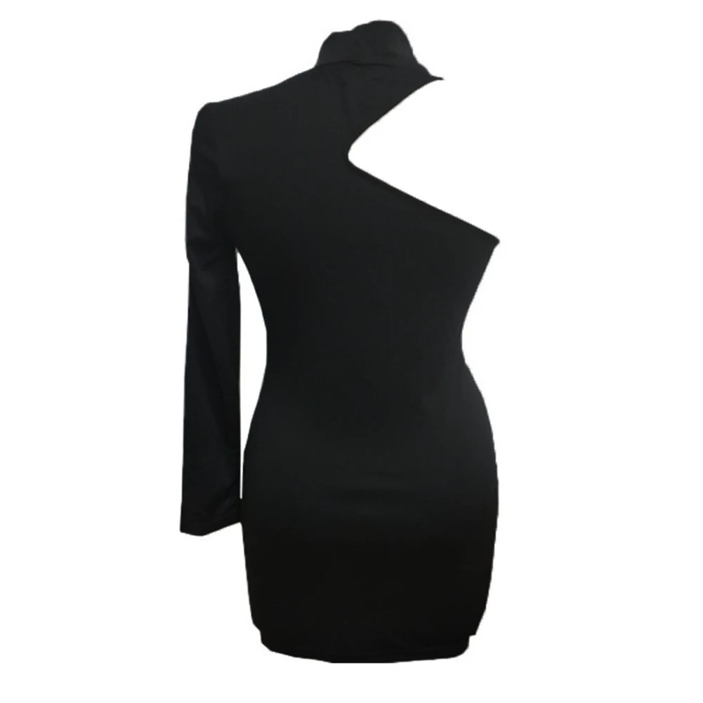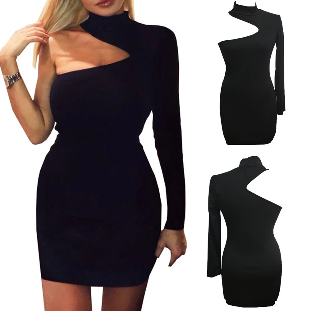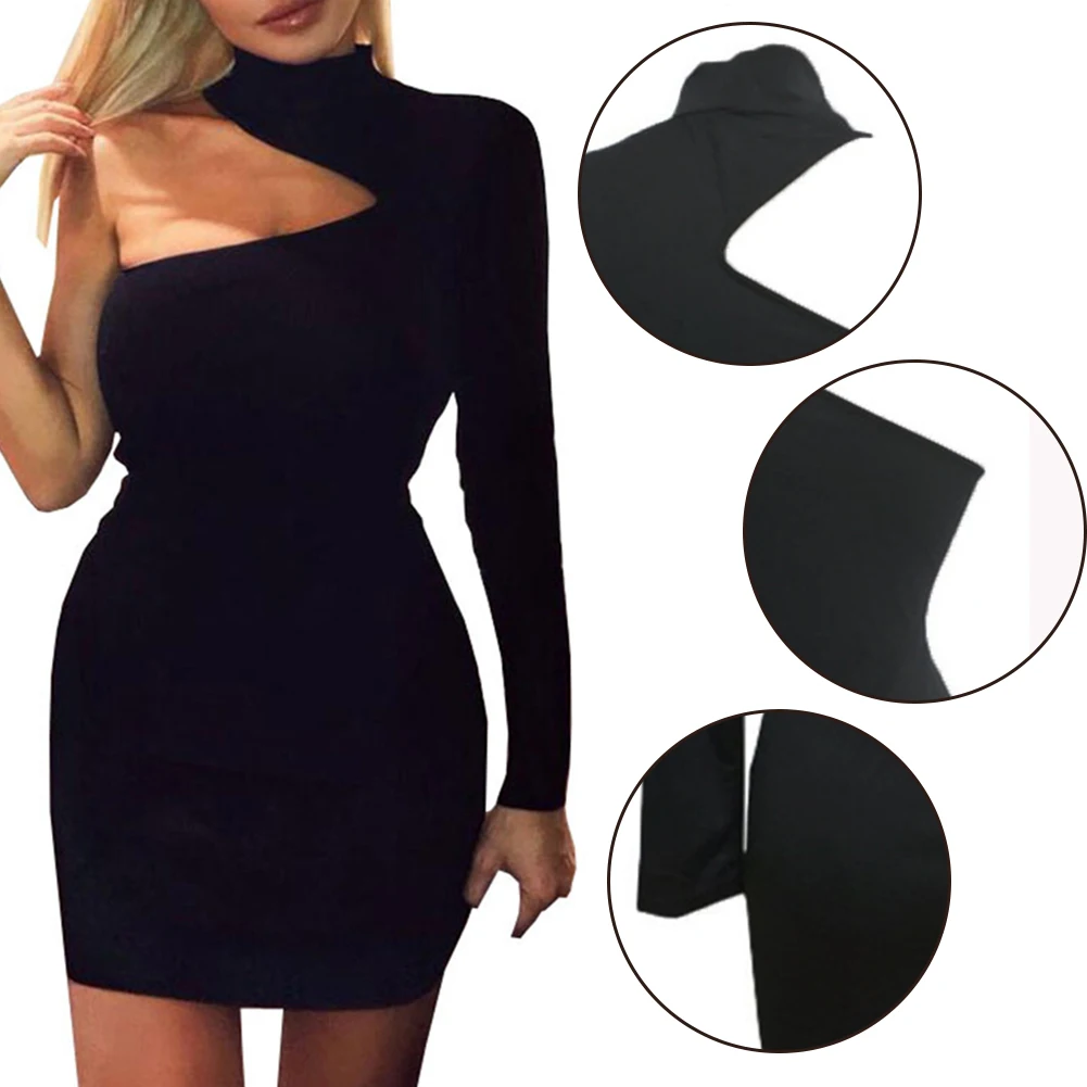Наименование товара: женское черное платье с высокой горловиной и вырезом на шее, Клубная одежда, облегающее платье