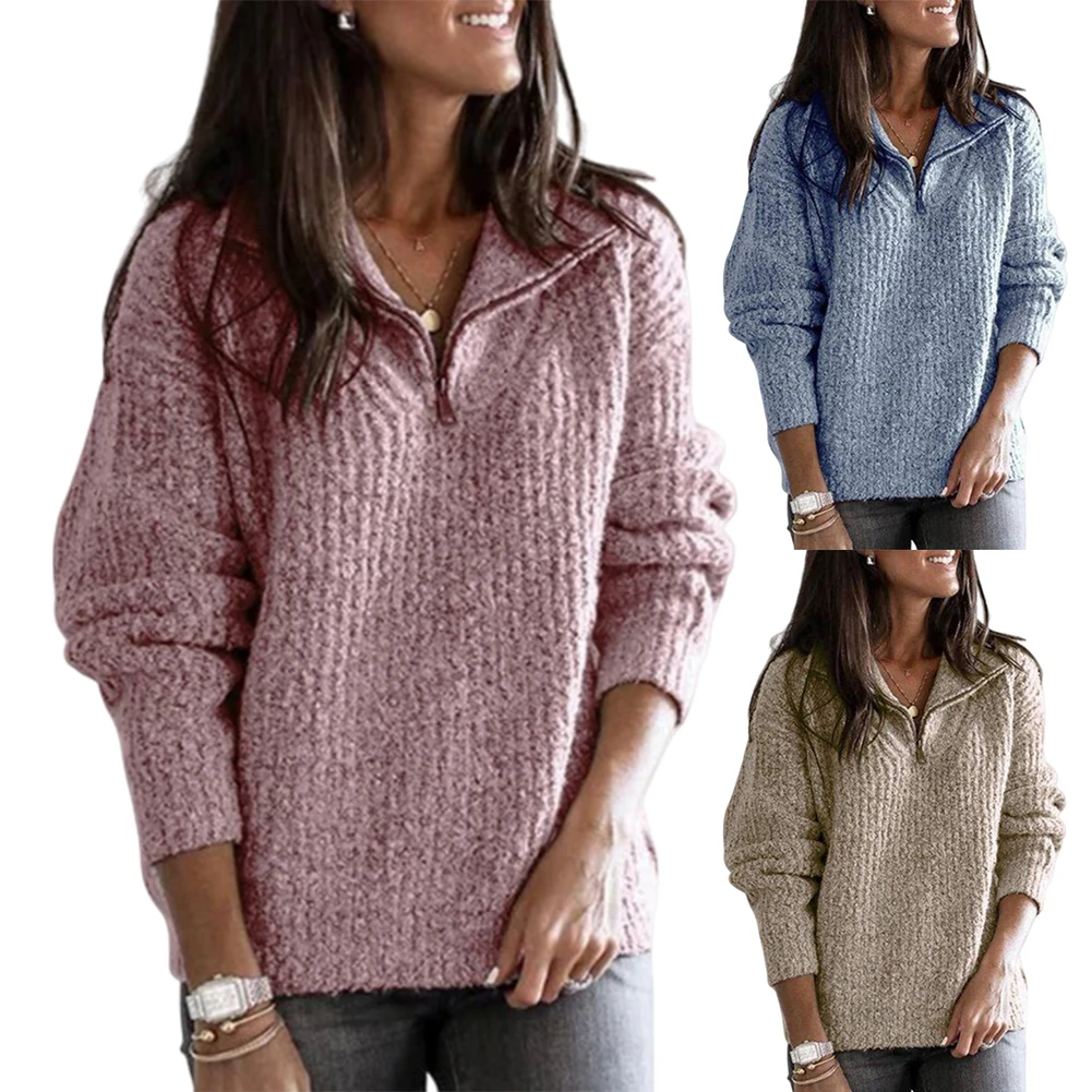 Женский свободный трикотажный свитер, Однотонный свитер на молнии с длинным рукавом размера плюс на осень