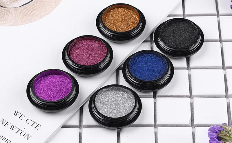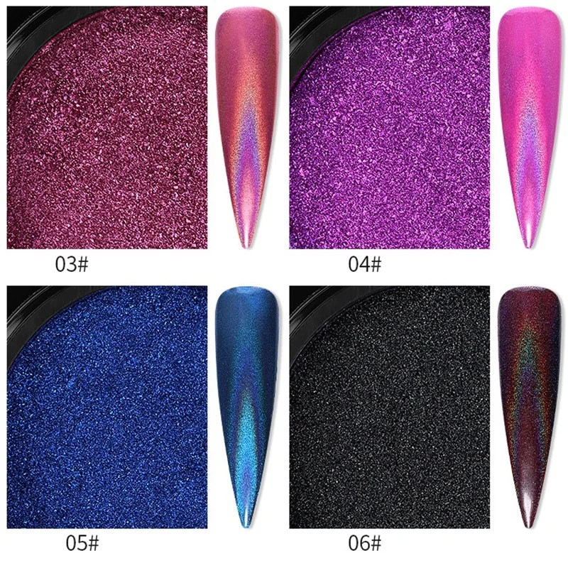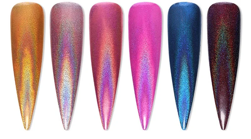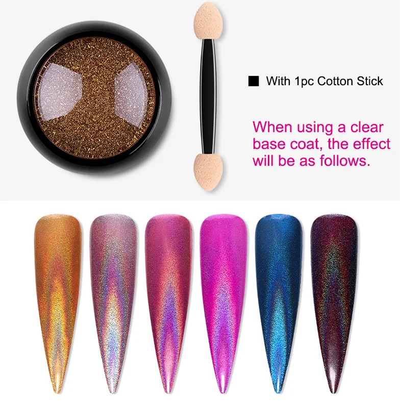 1 шт. зеркальная пудра для дизайна ногтей, 6 цветов Радужная Лазерная пудра с ватной палочкой, втираемый дизайн ногтей для дизайна ногтей, волшебный зеркальный дизайн ногтей