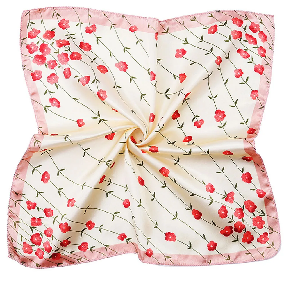 Женский квадратный шелковый шарф с цветочным принтом, повязка на голову