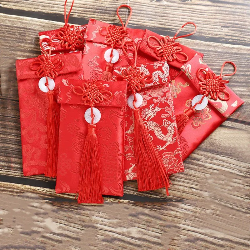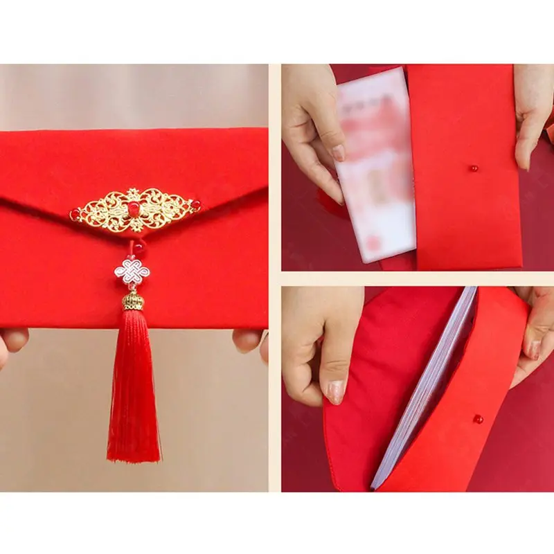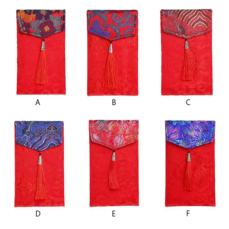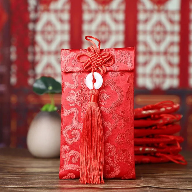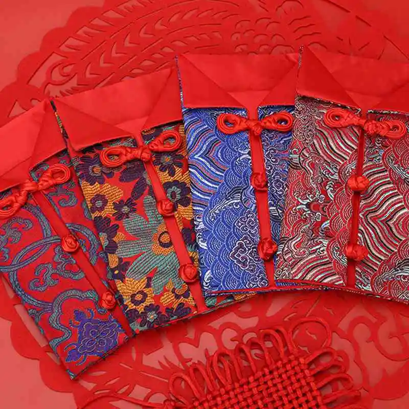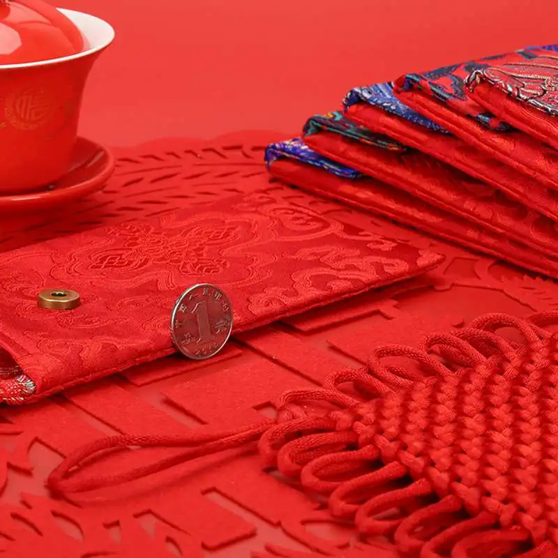 2. Тканевый красный конверт в китайском стиле, художественный золотой штамп и тонкая работа.