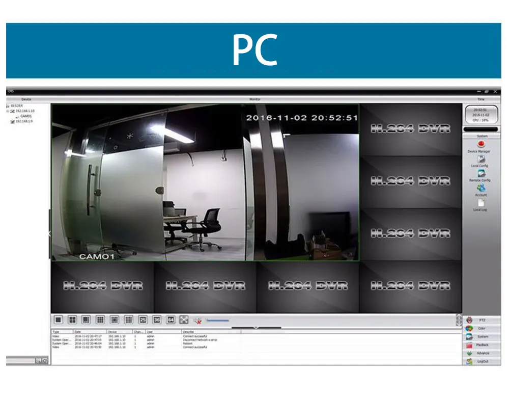 Сжатие видео H.264 Видеосистема NTSC/PAL Операционная система Linux Графический пользовательский интерфейс (GUI) Видеовход BNC: 4/816 канальный вход Другой видеовыход VGA/HDMI Аудио вход/выход вход: 4ch/выход: 1ch Разрешение дисплея NTSC: 2.0MP/PAL: 5.0MP Разрешение записи на выбор: 1080N Режим записи непрерывный/график времени/Обнаружение движения Поддержка функции сети Live View с IE и мобильным телефоном Сеть RJ45, 10 м/100 м Сетевой протокол TCP/IP, PPPoE, DHCP и DDNS Удаленный доступ к локальной сети или интернет-просмотр PTZ Управление RS-485 Интерфейс HDD поддерживает максимум 4 ТБ SATA HDD (не входит в комплект) Резервное копирование USB/USB 2,0 Приложение ios и android Питание DC12V