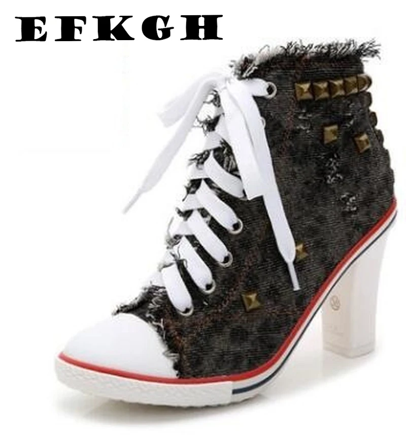 2019 Boots Women Denim High heels Pumps Rivets canvas Sneakers Boots Ankle Thick heel and Thin Heels Shoes zapatos de mujerUS $ 64.99 /