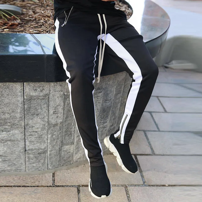 Мужские Винтажные спортивные штаны для бега, Модные полосатые штаны на молнии в стиле хип-хоп для фитнеса, уличная одежда, спортивные штаны, Pantalon Homme