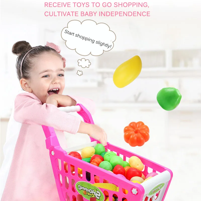 Мини-Тележка для покупок поставляется с 16 шт фруктов и овощей, с очаровательным дизайном и различными стилями. Легко собрать, лучший подарок для детей.
