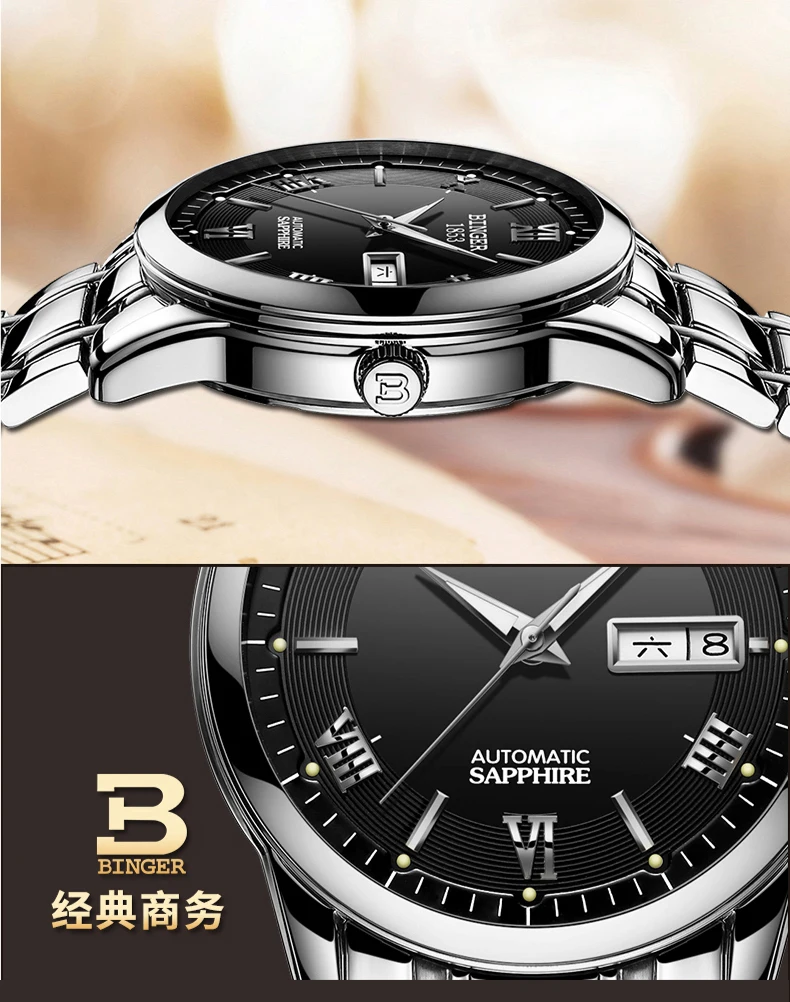 Switzerland BINGER Мужские автоматические механические часы Топ бренд класса люкс Бизнес водонепроницаемые часы мужские спортивные часы Relogio Masculino