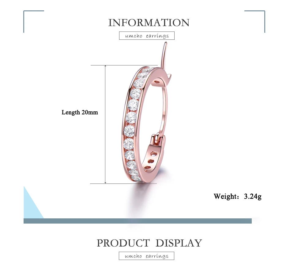Бренд: UMCHO Основной камень: AAA + кубический циркон Тип изделия: серьги-кольца Тип металла: 925 пробы Серебряный Вес изделия: Approx.3.24g Происхождение камня: Китай