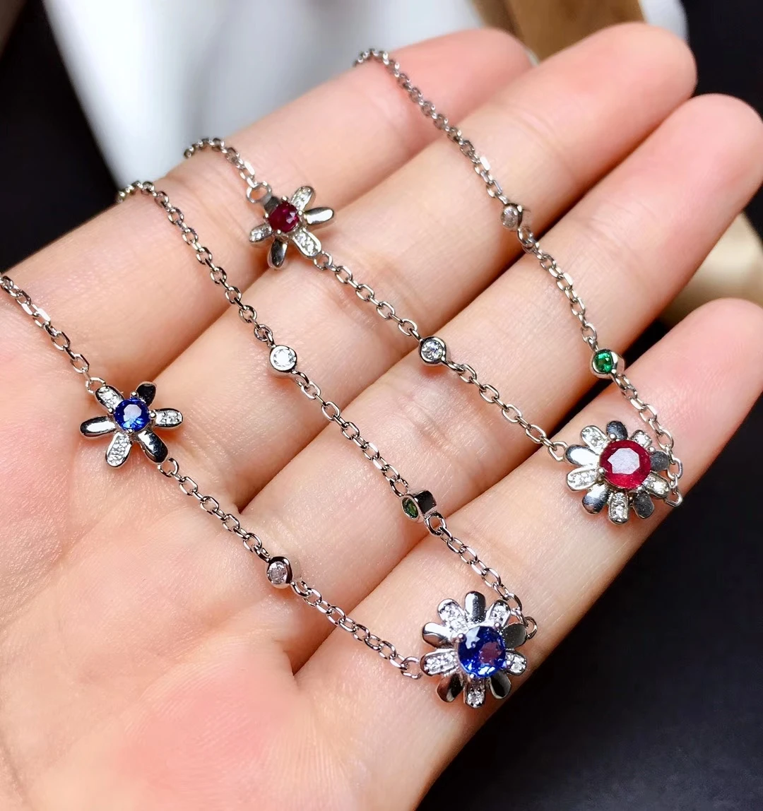 Основной драгоценный камень: натуральный сапфир Основной драгоценный камень: натуральный рубин, Размер камня около: 3*3 мм, 4*4 мм Тип металла: Стерлинговое Серебро 925 пробы, Боковой камень: циркон.