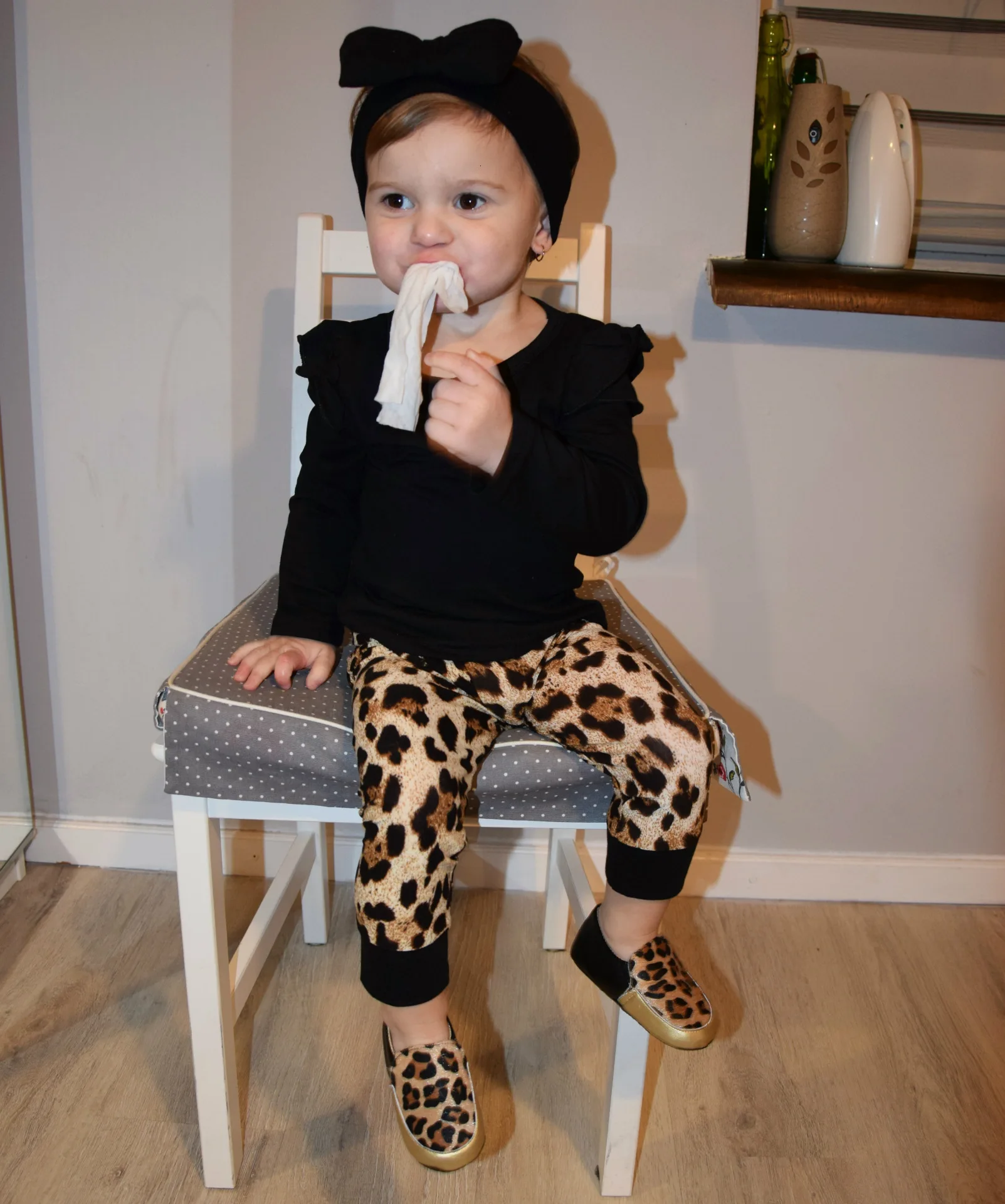 Комплект осенней одежды для девочек, футболка с длинными рукавами и штаны с леопардовым принтом, комплект из 2 предметов, 2019